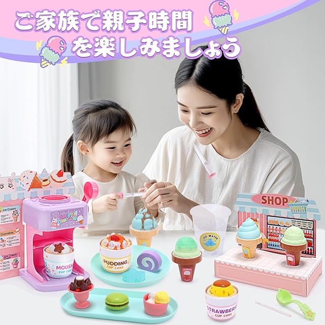 【豊富なおままごとセット&DIY可能】このセットでは、アイスクリームとカップケーキの両方を楽しめます。さまざまなアクセサリーを使って、自分だけのオリジナルアイスクリームやデザートを作ることができます。
