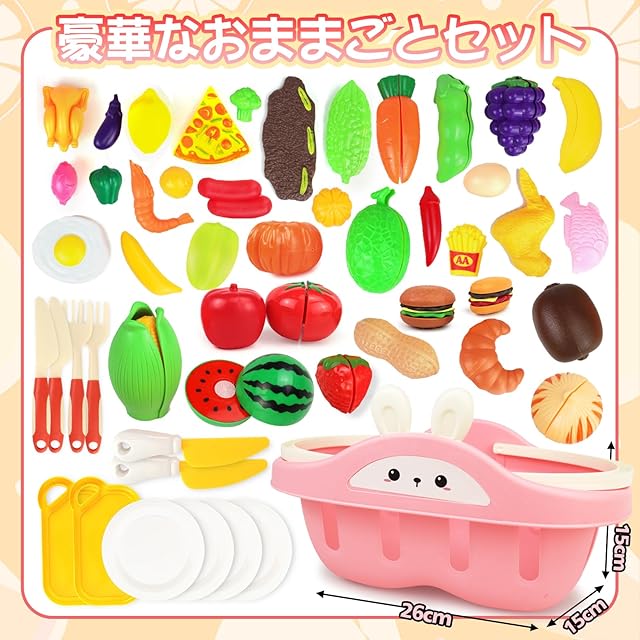 商品名:CORPER TOYS おままごとセット キッチンセット 51点セット 食材 野菜 果物 料理ごっこ 切る遊び 知育玩具 収納ケース付き 面ファスナー式 おもちゃ ごっこ遊び 男の子 女の子 プレゼント クリスマス 誕生日 子供 親子遊び