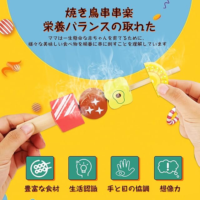 商品名:モンテッソーリ玩具 知育玩具 おままごとキッチン 木製【知育のプロ推薦】 BBQ バーベキューセット棒通し 2 3 4歳幼児 指先訓練 形状認知 早期開発 はめこみ 形合わせ 女の子 男の子 キッチン子供玩具 プレゼント 誕生日 ギフト親子遊び ごっこ遊び 子供 ままごと おもちゃ