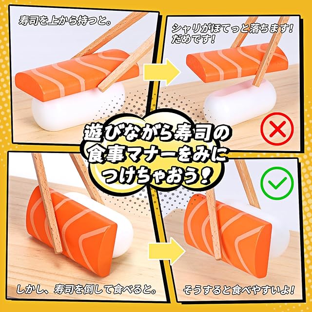 【ごっこ遊びで知育にぴったり】お子様はごっこ遊びながら、寿司の食事マナーをみにつけできます。また、家族や友人と一緒に遊ぶ場合は、子供たちは寿司屋さんやお客さんとしての役割を演じることで、社会的なスキルやコミュニケーション能力を発展させることができます。