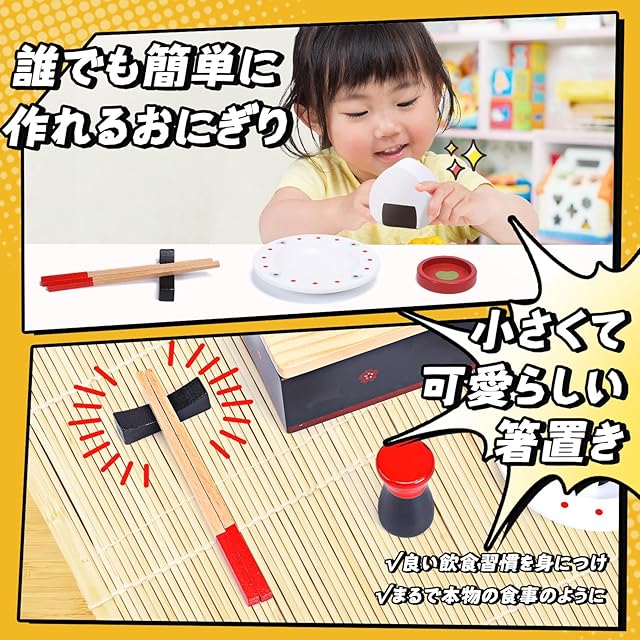 【おままごと和風寿司セット】この寿司セットは、4つの精巧な寿司、4つの美味しい海苔巻き、可愛らしいおにぎり、そして一式の食器を含んだ、精巧にデザインされたごっこ遊びの食材です。各寿司は、形状から具材まで、日本の特色が豊かに表現されており、子供たちはお寿司の魅力を味わうことができます。