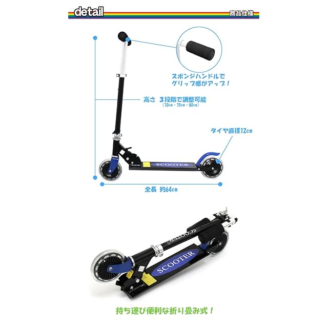 商品名:キックボード キックスケーター キッズ 子供 こども ジュニア 用 折りたたみ プロテクター ブラック FJ1565-black