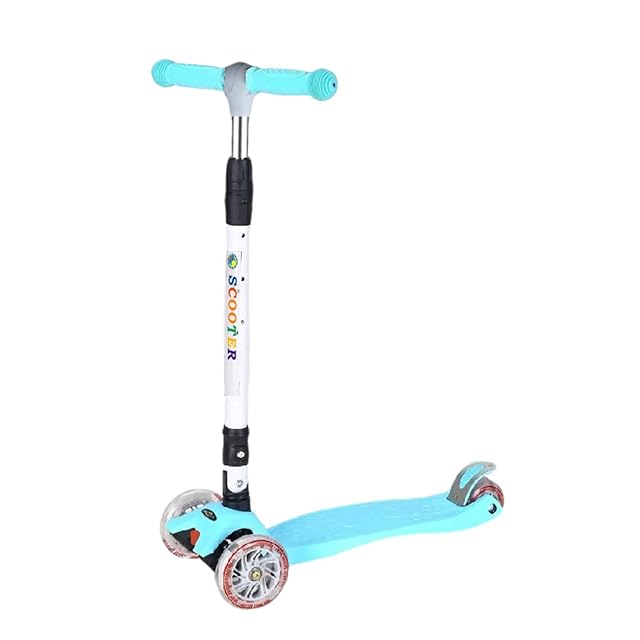 新タイプ 2カラー キックボード 折りたたみ式 子供用 3輪 ブレーキ付き キックスケータ 3輪キッズスクーター イージースケーター SCOOTER 子供 おもちゃ 光る (ライトブルー)