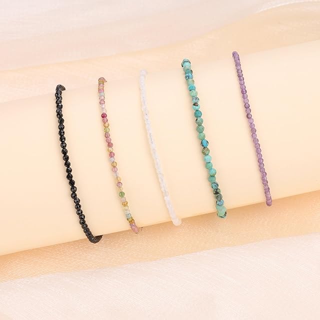 パワーストーン: このレディースブレスレットには、小さな2mmのトルマリン天然石ビーズが使用されています。トルマリンは10月の誕生石で、多彩な色合いが特徴とされ、心に調和をもたらす石です