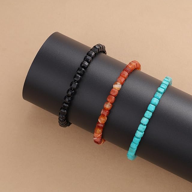 このレディースパワーストーンブレスレットは、5mmのキュービックパワーストーンビーズを使用した、シンプルでありながら個性を引き立てるビーズブレスレットです。<br>3種類のパワーストーンからお選びいただけます:オニキス、カーネリアン、ターコイズ。それぞれのパワーストーンは、異なる特徴と魅力を持ち、アクセサリーとしての美しさを引き立てます。<br><br>オニキスは、その黒色が特徴で、強さや安定感を象徴しています。<br>カーネリアンは、鮮やかなオレンジ色が目を引き、活力や意欲を高める石として知られています。<br>ターコイズは、爽やかな青色が特徴で、リラックスした印象を与えるとされています。<br><br>ビーズブレスレットは細身のデザインで、他のブレスレットと重ね付けを楽しむことができます。レディースブレスレットの長さは17cmに3cmのアジャスターがついており、腕周り15cmから18.5cmの方にフィットします。<br>調整が可能で、快適に着けられるデザインです。<br><br>レディースブレスレットは素敵なジュエリーボックスが付属しており、大切な方へのプレゼントや自分への贈り物にもぴったりです。<br>シンプルでありながらも、パワーストーンが持つ独自の魅力を感じさせるパワーストーンブレスレットです。