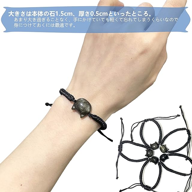 [GUFER] 黒曜石ブレスレットネックレス お守りペンダント 自然な黒曜石 猫 ブレスレット パワーストーン メンズ レディース カップルブレスレット 長さ調節可能 (ブレスレット*金(bracelet gold))