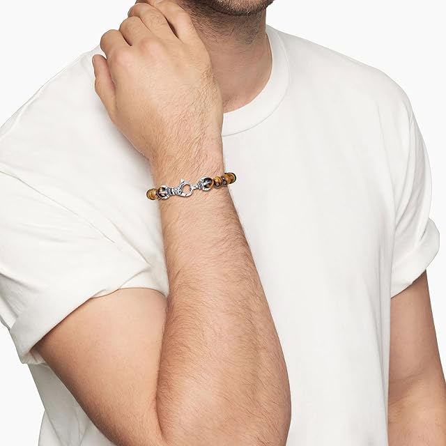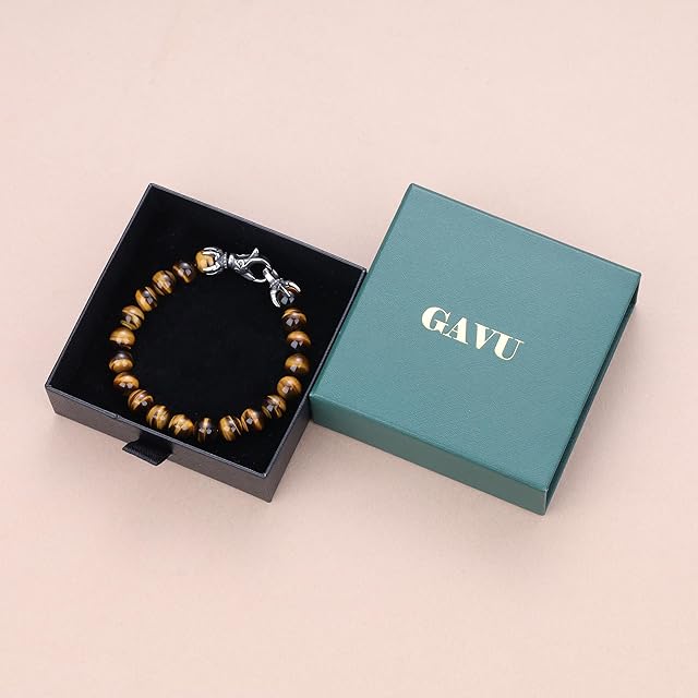 このメンズパワーストーンブレスレットは、3つのデザインからお選びいただけます。1つ目は、力強さを象徴する8mmタイガーアイ。<br>2つ目は、自然のエネルギーを感じられる8mmラバストーン。<br>3つ目は、8mmタイガーアイ、オブシディアン、ヘマタイトを組み合わせたトリプルお守りブレスレットです。<br>それぞれの石は独自の意味を持ち、身につける人に特別なエネルギーをもたらします。<br><br>このビーズブレスレットは、19.5cm、21.5cm、22.5cmの3サイズから選べるので、手首にぴったりフィットします。金留め具には、ヴィンテージ感のあるクロー(爪)モチーフのステンレス製カニカンを採用。<br>しっかりとしたホールド感があり、デザインのアクセントにもなっています。<br><br>ビーズの組み合わせとデザインはシンプルでありながら、男性らしいスタイルを引き立てます。カジュアルにもフォーマルにも合わせやすく、普段使いにも特別な場にも適しています。<br>さらに、メンズブレスレットは美しいジュエリーボックスに収められてお届けします。ご自身用としてはもちろん、大切な人への贈り物にもおすすめです。<br>魅力的で実用的なGAVUのメンズブレスレットをぜひお試しください。