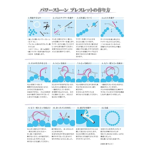 この商品だけでパワーストーンブレスレット作製に必要なものが揃いますので、すぐに天然石ブレスレット作りや修理を行っていただけます。ストラップやネックレス作りにもどうぞ。