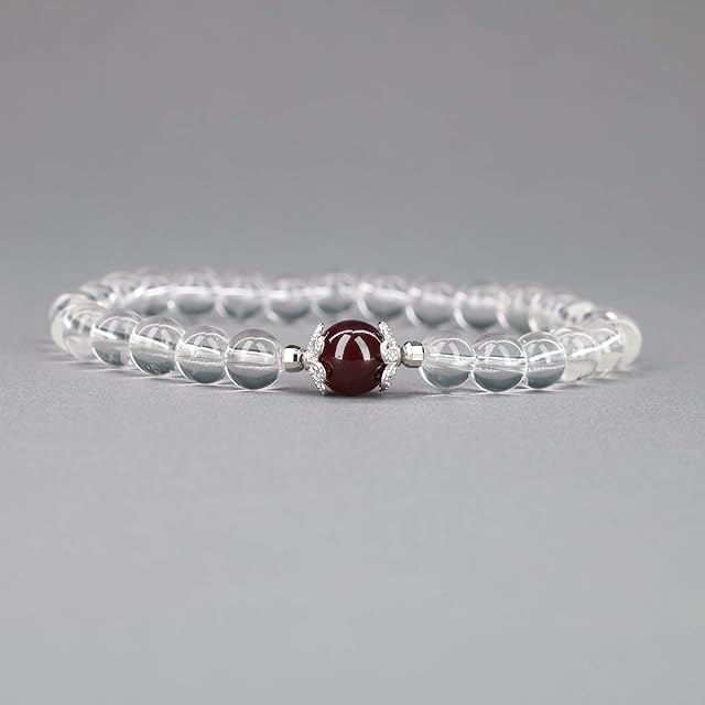 COAI商品は天然石を用い、自社のデザイナーがデザインし優れた技術のある職人が天然石を厳選して作り出したものでございます。<br><br>透明感のある水晶と深い赤色のガーネットを使用した素敵ばブレスレットです。<br>シルバー製の飾りもとても魅力的です。<br><br><b>水晶</b><br>水晶は普段の生活にはもちろん、大切な祈祷や儀式など神聖な場所でも用いられています。<br>完全に透明な水晶は、目標や前に進むべき道をより明確にし、夢の実現をサポートしてくれるといわれています。<br>また、水晶は心身の活性化や潜在能力の開花、直観力や想像力の強化などにも力を貸してくれます。<br>まさに、パワーストーンのなかでも特に、万能的な存在としても過言ではないでしょう。<br><br><b>ガーネット</b><br>ガーネットは1月の誕生石としてよく知られています。<br>また「実りの象徴」とされ、目標に向かい、コツコツと積み上げてきた努力の成果を実らせて、成功へと導いてくれるといわれています。<br>受験や就職など、目標のために努力し頑張っている人のサポートをし、力を貸してくれるでしょう。<br>この石は持ち主に対していつまでも変わらぬ強い忠誠心と愛情を持つ石だと言われています。<br><br>素敵なプレゼントボックス付きで、自分へのご褒美、家族、恋人、友達にプレゼントするのはオススメです。<br><br><br><b>注意事項</b><br>※上質な天然石を加工した商品になりますので、多少のヒビ・欠けがある場合がございます。サイズ±0.5mmはご了承下さい。<br>※撮影機材の特性、またモニターの画面設定や環境により肉眼での色味と誤差が生じる場合がございます。<br> ※商品の性質や構造上、配送時の摩擦等により止むなく小さい傷やくもり等が生じる場合がございます。予めご了承下さい。<br>※商品について問題や不良がある場合やその他アフターサービスが必要な場合は評価される以前に、お気軽に当店までご連絡ください。