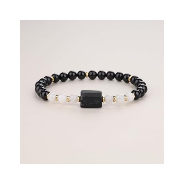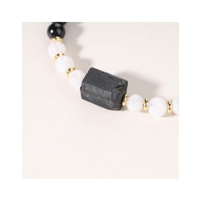 ブラックトルマリンは負のエネルギーから守るとされ、ムーンストーンは感情の安定を促進し、クリゾプレーズはポジティブなエネルギーを引き寄せると言われています。これらの組み合わせにより、異なるパワーが一つのパワーストーンブレスレットに融合しています