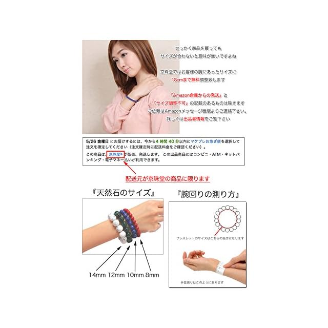 丈夫で切れにくい伸縮性のあるオペロンゴムを4重で使用しています。 玉の大きさは8mmは主に女性向け、10~12mmは男女共通、14mmは主に男性向けというのが一般的です。