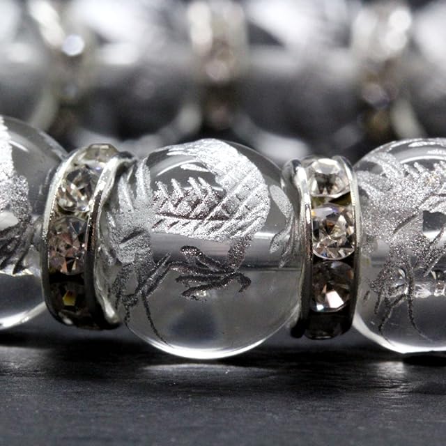 商品名:[石輝] 銀彫り五本爪皇帝龍水晶12mmシルバーロンデル数珠ブレスレット パワーストーン [b276]