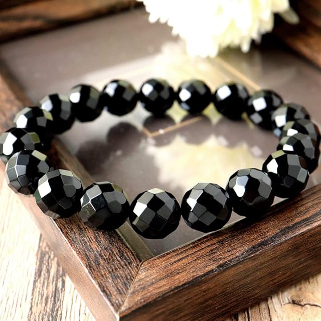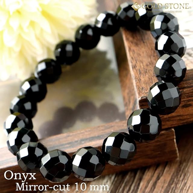 商品名:ブレスレット メンズ レディース オニキス 黒瑪瑙 天然石 パワーストーン 64面カット 10mm 内周 約17.5cm