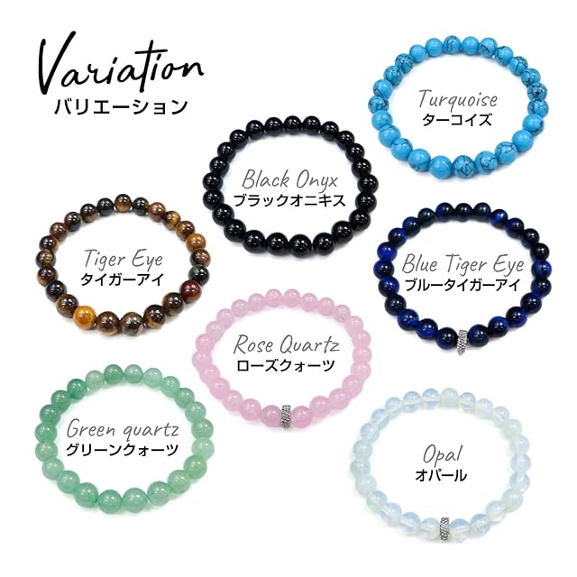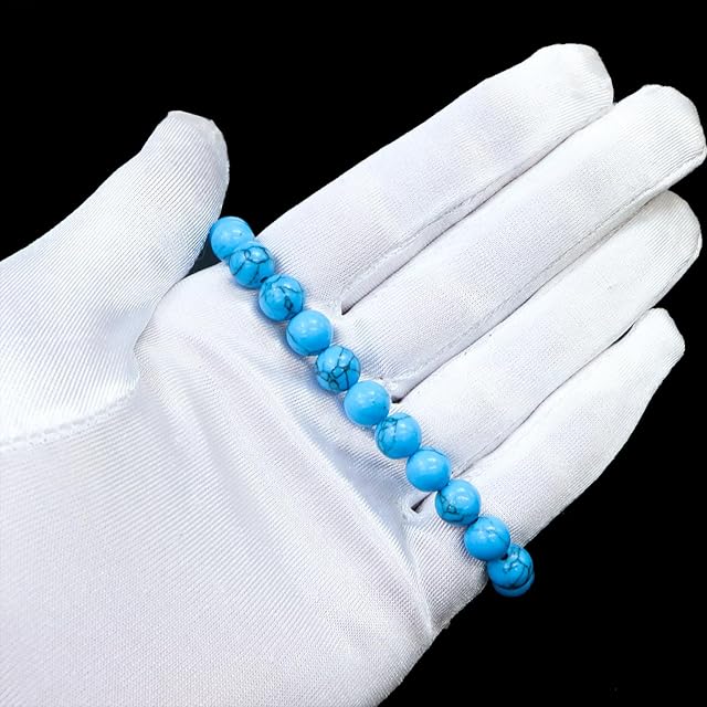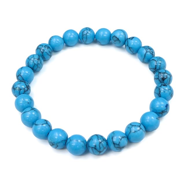 ■商品説明 <br>天然石を使用したブレスレットです。自然で育んだ美しい天然石をこの機会に身に着けてみませんか? <br>当社ブレスレットは7種類のバリエーションをご用意しておりますので、好みの石を探してみましょう! <br>天然石には独自のエネルギーと効果があると言われていますので、自身の目標や目的、願いに合わせてお選びください。 <br>ターコイズは様々な文化で崇拝され多くの効果があり、身を守る保護の効果や癒し、幸運と豊かさを引き寄せると信じられています。 <br> <br>■サイズ <br>玉のサイズ:8mm <br>手首周りサイズ:約17cm※伸縮性あり <br> <br>■注意事項 <br>自然が育んだ天然石は天然素材のため、性質上多少のサイズ・色・濃淡・形が違う場合がございます。 <br>本商品は天然石をベースにしていますが、製造過程で不純物除去のため人工的な処理が行われることがあります。 <br>摩擦や衝撃・水濡れにより表面の光沢が薄れたり、色味が変化することがございます。濡れた場合は柔らかい布で拭き取ることをおすすめします。 <br>長時間の直射日光(紫外線)にさらされると、色あせることがございます。 <br>誤飲などの事故を防ぐため、小さなお子様の手の届かない場所でご使用、保管してください。 <br> <br>※当社販売製品の違法な類似品や模倣品に対しては、商標法・不正競争防止法など、その他法令に抵触する場合、弊社顧問弁護士と相談の上、民事・刑事の両面から厳正に対処致します。