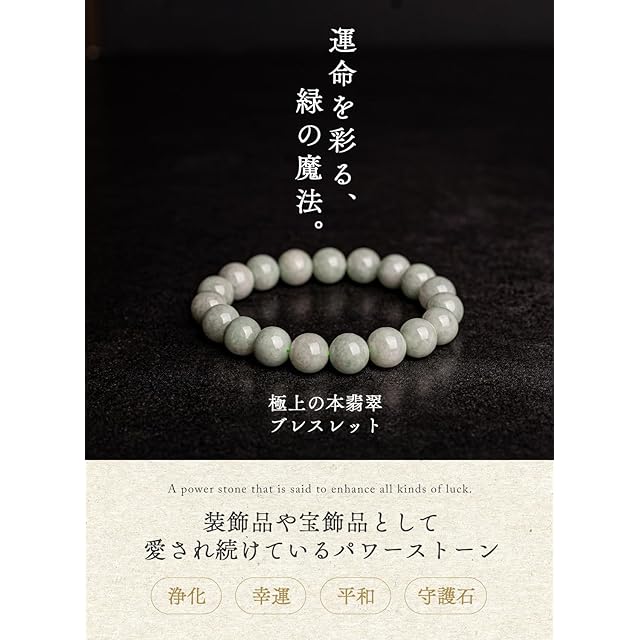 商品名:[京珠堂] 本翡翠 ブレスレット 天然石 パワーストーン ミャンマー産 ジェイド 浅緑 (10mm, 17cm)