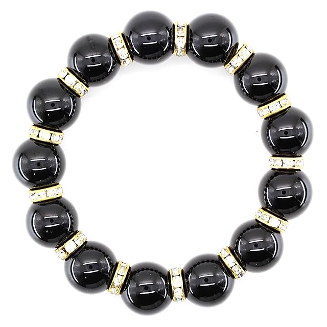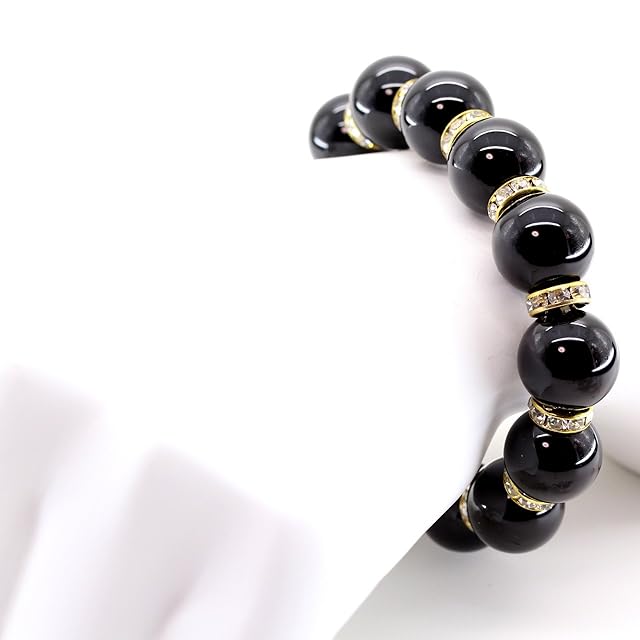 商品名:[石輝] 天然石オニキス16mm&オニキス10mmパワーストーンお守りペアブレスレット[b280]