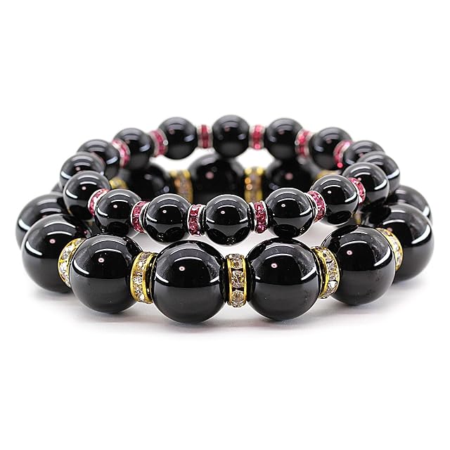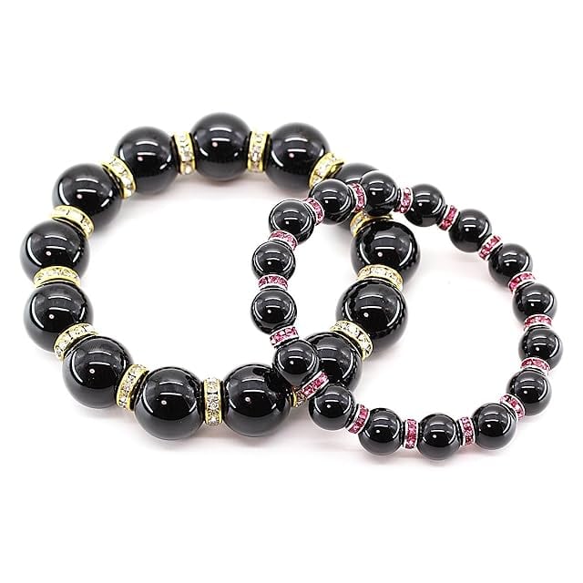 [石輝] 天然石オニキス16mm&オニキス10mmパワーストーンお守りペアブレスレット[b280]