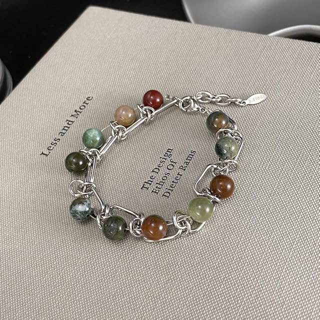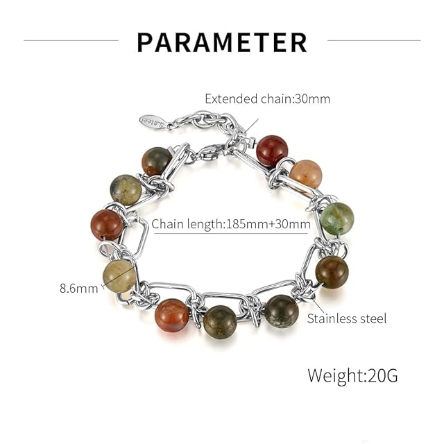 【Rockyu ブレスレット】天然石 ブレスレット レディース パワーストーンブレスレット メンズ ステンレス 8.6mmの美しい天然石が並び、シルバー色のステンレスチェーンがアクセントになります。軽量で快適に身に着けられ、約20gの軽さで、長時間の使用にも適しています。