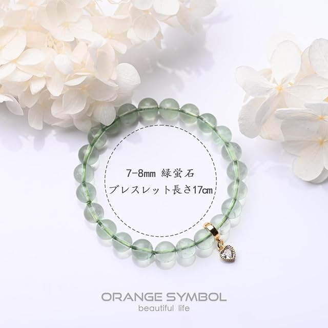 商品名:[ORANGE SYMBOL] 7-8mm 緑蛍石 グリーン フローライト ブレスレット パワーストーン 天然石 御霊結晶石