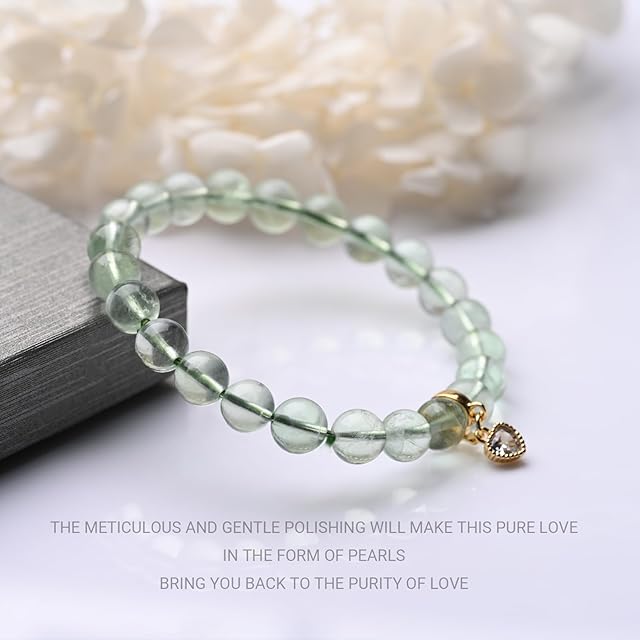 【仕事とプライベートを彩る「和モダンスタイリング」】シンプルなビジネススーツ(白シャツ×黒スラックスや濃色ドレス)に組み合わせれば、透き通るグリーンフローライトが「厳格さを和らげる森林浴効果」を発揮。ゴールドのハートチャームが「漆器の縁飾り」のような上品な輝きを添え、職場で「知的で女性的なオーラ」を放ちます。カジュアルスタイルには、淡緑のコットンワンピースに「新緑の小川」のような清涼感を、白Tシャツに「星砂のきらめき」のようなトレンドアクセントをプラス。