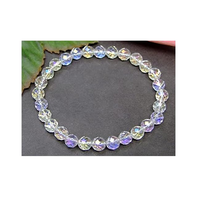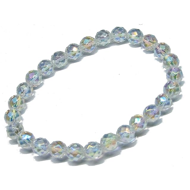 【hinryo】4mm~14mm A カット アクアオーラ レインボーオーラ 水晶 ブレスレット ポーチ付き 天然石 パワーストーン (6mm 64面カット 19914 内径16cm)
