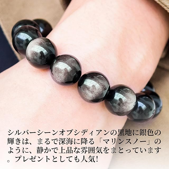 商品名:[シルバーサンダー] ブレスレット メンズ 天然石 パワーストーン 黒曜石 シルバーオブシディアン 大玉ブレスレット クール エネルギー プレゼント 人気 ギフト 誕生日 男性用 バレンタインデー ホワイトデー
