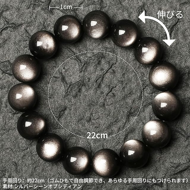 【商品仕様】手首周りサイズ:22cm(サイズ調整できる),シルバーシーンオブシディアンサイズ:10mm。素材:シルバーオブシディアン,※サイズは多少誤差がある場合がございますので予めご了承ください。
