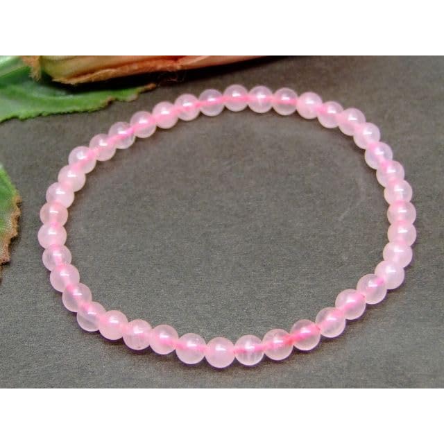 [hinryo] 57297 4mm A ローズクォーツ 紅水晶 ブレスレット 内径16cm ポーチ付き ブラジル産 天然石 パワーストーン