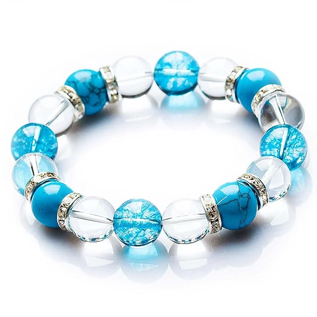 染色加工練ターコイズ12mm・ガラス練水晶12mm・ブルークラック水晶12mm