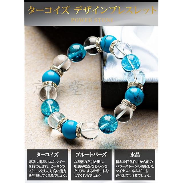 商品名:[京珠堂] 選べる ターコイズ パワーストーン デザイン ブレスレット (ブルークラック水晶)