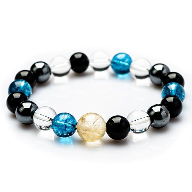 商品名:[京珠堂] メンズ ブレスレット ルチルクォーツ オニキス ヘマタイト パワーストーン カラークラック水晶 ルチル (ブルークラック水晶)