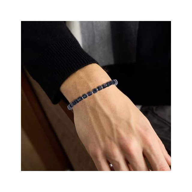 素材:5mmの天然パワーストーンと2mmのステンレスビーズを交互に配置し、無駄のないモダンな雰囲気に仕上げたメンズブレスレットです