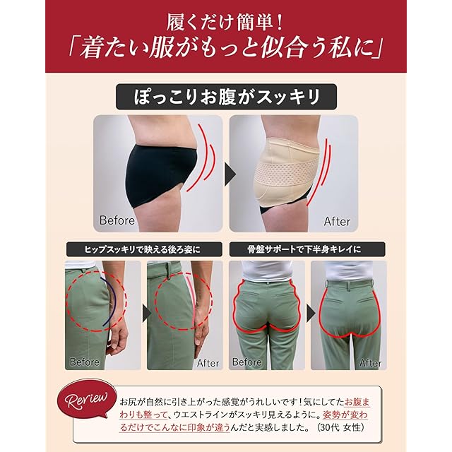 【ヒップラインをきれいにサポート】お尻を下から持ち上げるような構造で、丸みのあるヒップラインに。着用時のシルエットを整え、美しさを引き立てるデザインです。