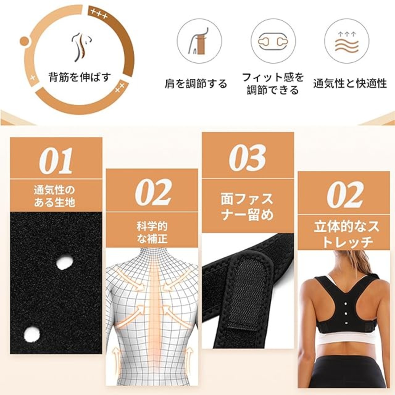 商品名:猫背ベルト 姿勢矯正サポート 背筋サポート調整可伸縮 メンズ レディース兼用 猫背 背中の丸まり 巻き肩対応 補正 通気素材 伸縮性 脱着簡単快適 姿勢を整える フリー 肌にやさしい素材 美しい姿勢へ L