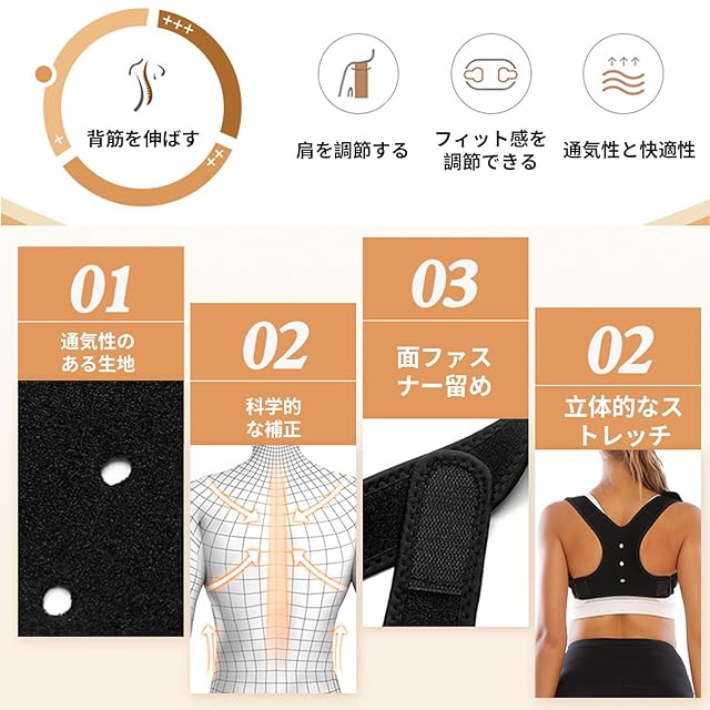 背筋スッと伸びる! 若々しく自信あふれる印象に 装着するだけで背筋が自然と伸び、猫背を効果的に予防・改 善します。