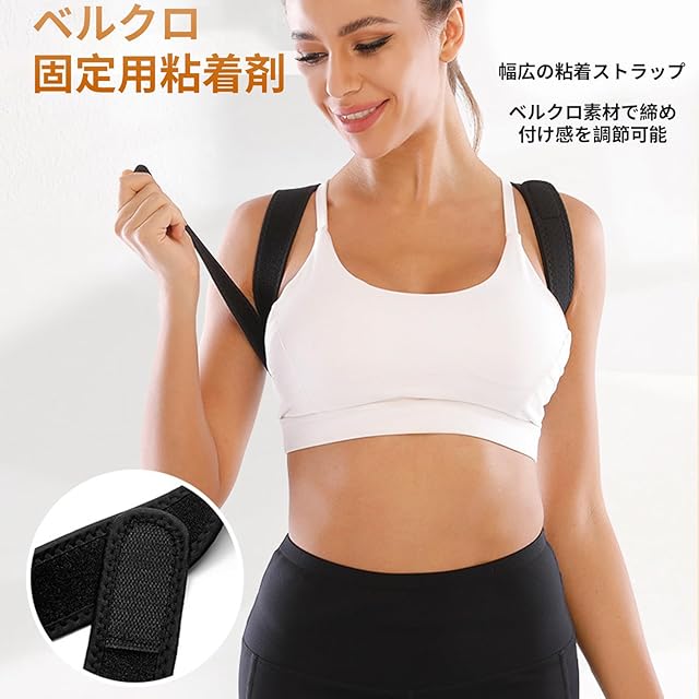 簡単調節でピタッとフィット! 無理なく理想の姿勢へ 弾力性のある魔法のテープと調節可能なストラップ、丈夫なカバックルを採用。体型や締め付け感を細かく調整でき、肩甲骨を自然に引き寄せます。