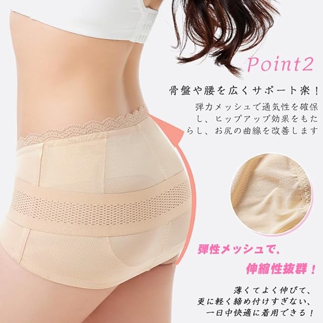 ➍「骨盤サポート」は、骨盤部分を包み込み、ボコボコのお肉をカバーし、美しいヒップラインを作ります。日常の動きの中で、快適な着用感と安定感を提供します。この補正下着は、股関節サポーターやドレス用下着としても使用できます。さらに、固定ベルトも備えています。