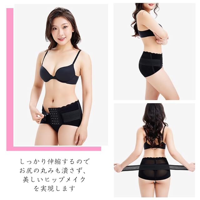 ➌「ホック+マジックテープ2セット設計」は、二重構造でお尻を丸く包み込み、4段階のホック調整が可能です。さらに、マジックテープベルトで骨盤を加圧し、しっかりとサポートします。長時間の使用でもズレずに快適なフィット感を提供します。このコルセットは、骨盤や腰痛、女性特有の問題、そして痛みを和らげるためにも最適です。