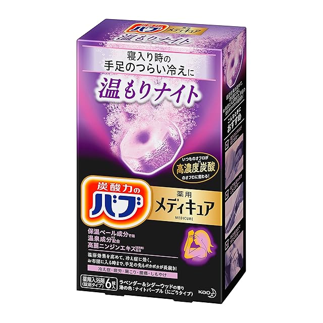 バブ メディキュア 温もりナイト 6錠入 高濃度 炭酸 温泉成分 冷え症に (泡の数バブの10倍)