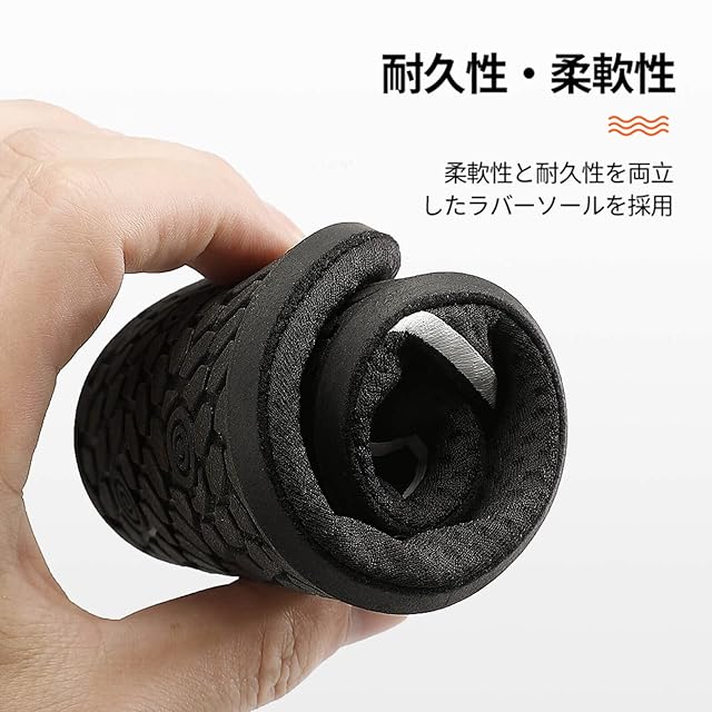 速乾性&軽さ:軽量で圧縮できて、持ちやすい。履き口にあるつまみが迅速かつ簡単に脱ぎ履きに役に立つ。蒸れを防ぐためにメッシュ加工がされていたり、乾燥しやすくなり、濡れてしまってもそのまま行動できます。