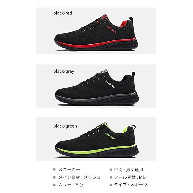 特徴:1.3色のお色が選べ、飽きのない買い続けるランニングシューズです。2.靴底には特殊な加工を施しており、滑りにくさを追究。履けば履くほど足に馴染み、足の形にフィットしていきます。3.強いデザイン性持ち、低いコストで高い満足感です。4.通気性が強い、どの季節でも大歓迎です。5.シンプルなデザインでさまざまなファッションに合わせやすい、ジムなどの室内で履きはもちろん、アウトドアやレジャーにも大人気の一足です。