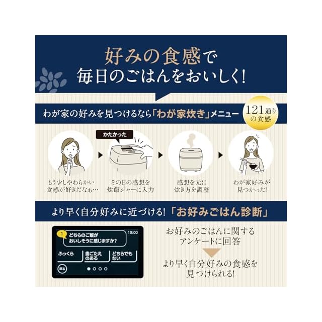 簡単に好みの食感に炊き分ける15通りの「炊き分けセレクト」メニュー