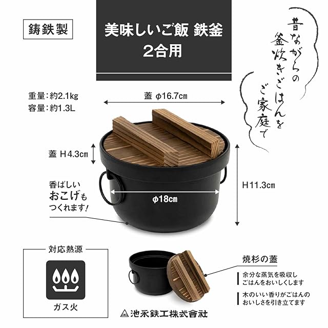 池永鉄工 美味しいご飯 鉄釜 ブラック 2合用