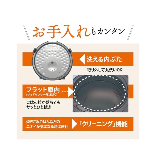 お手入れ簡単「洗える内ぶた」「フラット庫内」