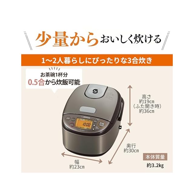 商品名:象印マホービン 炊飯器 3合 一人暮らし 小容量 極め炊き IHタイプ 日本製 保温30時間 ステンレスブラウン NP-GW05-XT