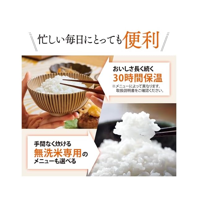 選べる2つの保温選択。30時間おいしく保温できる「うるつや保温」・「高め保温」