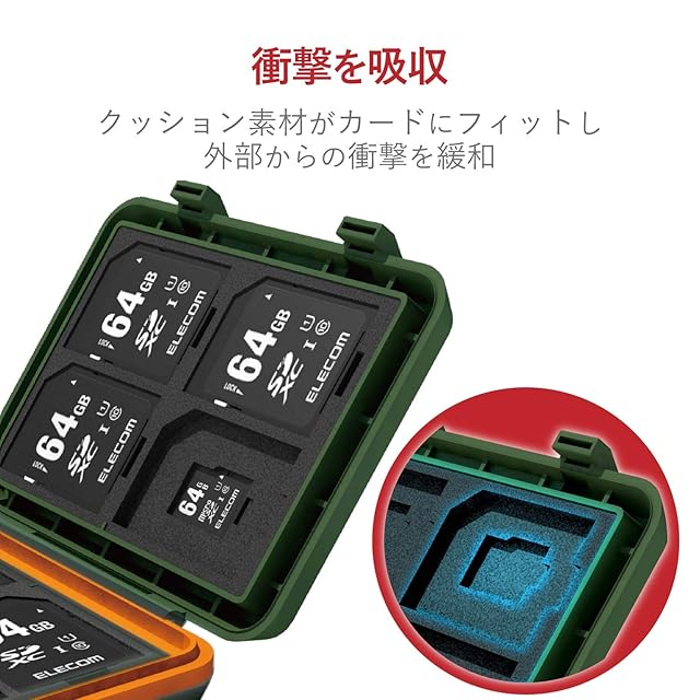 [特徴]SDカードとmicroSDカードをコンパクトに収納できる耐衝撃メモリカードケース