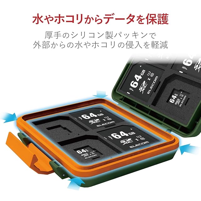 商品名:エレコム メモリカードケース SD8枚 MicroSD8枚収納 耐衝撃 カーキ CMC-SDCHD01GN