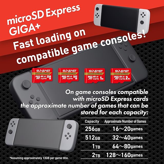 SUNEAST microSD Express 512GB 1TB 最大読込転送速度900MB/s 最大書込転送速度800MB/s 次世代技術microSDカード Switch2動作検証済み Class10 U3 V30 UHS-I A1 (1, TB)