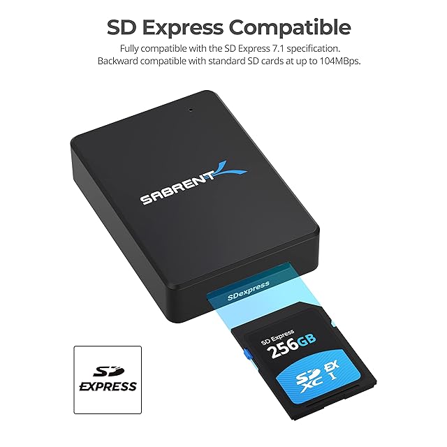 SABRENT USB 3.2 Type-CおよびType-A - SD Express 7.0カードリーダー(CR-SDX7)
